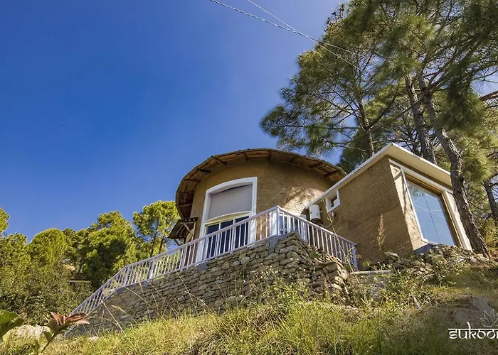 Το ξενοδοχείο Sukoon Nature Retreat Near Bhatrojkhan Ranikhet 4 αστέρων που απέχει 160 χιλιόμετρα από το αεροδρόμιο Πατναγκάρ, προσφέρει βιβλιοθήκη και εστιατόριο.